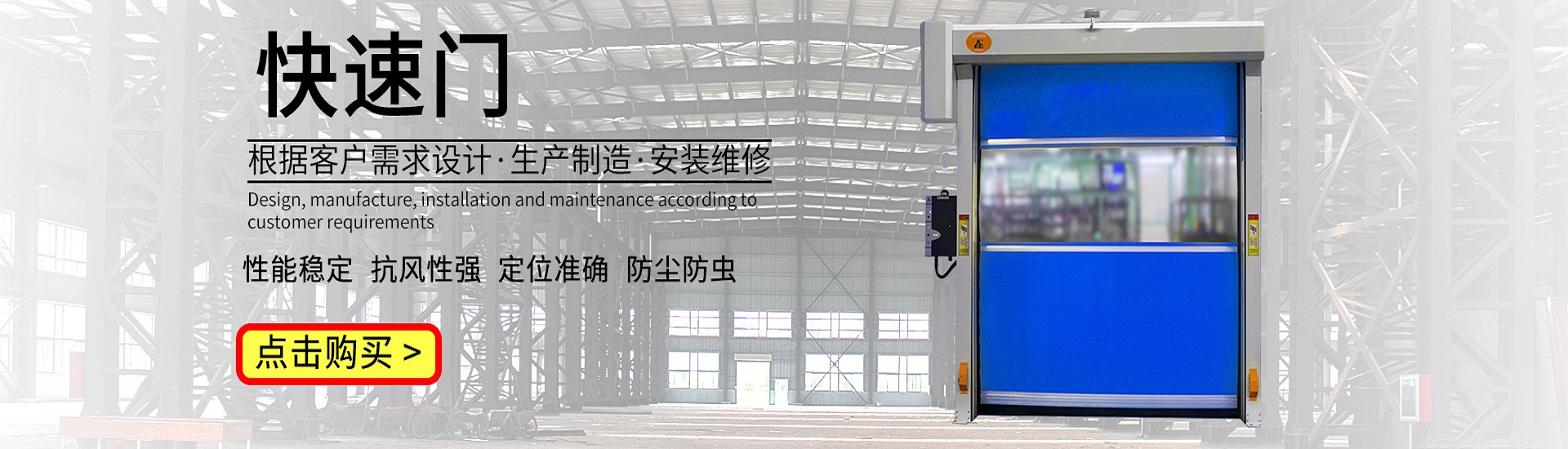 快速堆積門產(chǎn)品說明我公司制造的快速堆積門是在吸取國內(nèi)外同類產(chǎn)品優(yōu)點的基礎上自主研制生產(chǎn)的“抗風型”高速門產(chǎn)品。采用折疊高...
